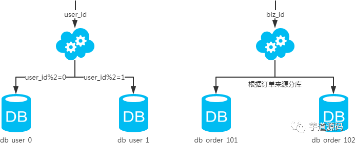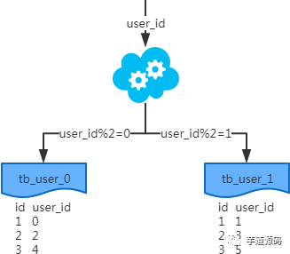 注:写入时,基因法生成userid,如图。关于xbit基因,例如要分8张表,23=8,故x取3,即3bit基因。根据userid查询时可直接取模路由到对应的分库或分表。