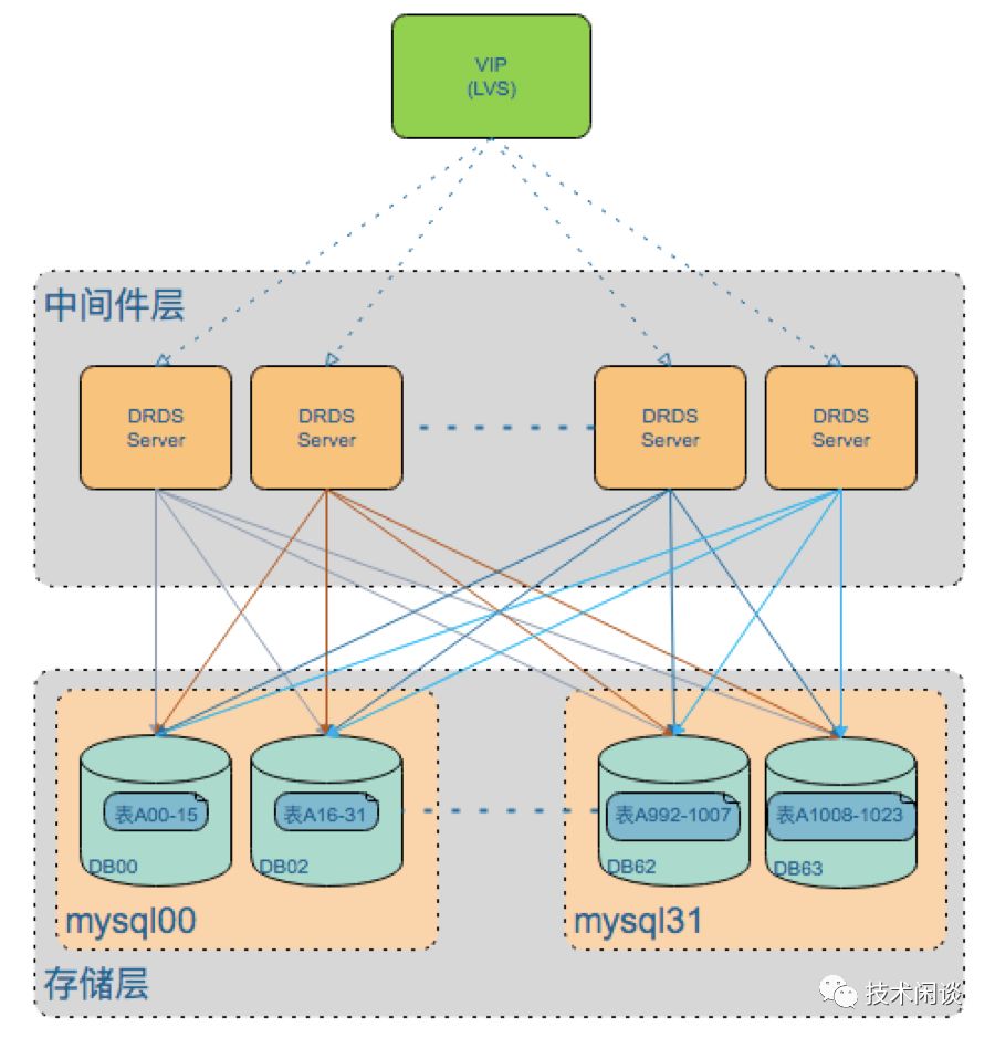 数据是存储在下面的数据库层(或者叫存储层)。这个数据库通常就是一组MySQL实例(在云上是RDS MySQL实例)。数据库层除了存储数据也承担了部分SQL计算功能,不过这里的SQL 通常不会太复杂。所以也有一个不完全正确的观点:在分布式MySQL数据库集群里,都是把MySQL当存储用的。