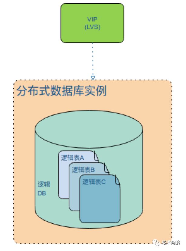 如上是业务视角下的DRDS架构图。对业务而言看到的就是一个数据库实例,实例下有库有表。这几个概念很简单:
