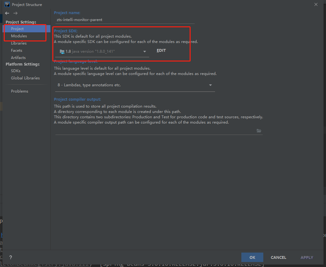 然后会发现有Projects和Modules选项,可以分别点击,看后面的Module SDK是否选中了jdk版本,如果没有的话选择一下就可以了