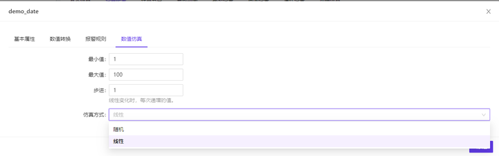 2、添加数据点:点击设备配置,选择驱动程序,配置驱动程序,勾选开启仿真,设置数值仿真。