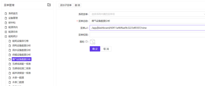 打开前台菜单配置,配置菜单并修改地址(注意添加/app):/app/dashboard/60f11a46ffaa9b3223df0307/view