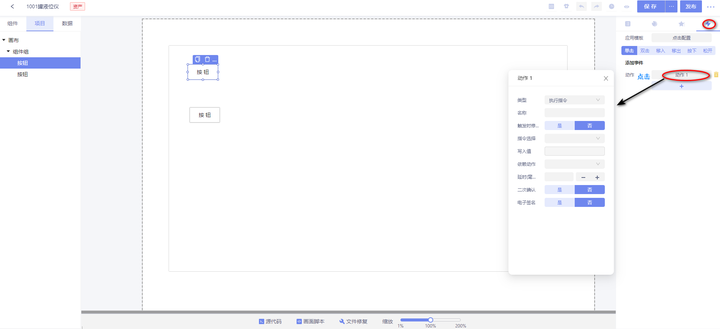 注:当控件属性配置出错时,无法点击保存