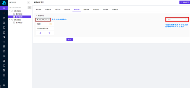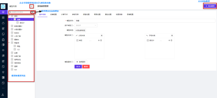注:添加模型时,每一个属性配置页配置完成后均需要点击保存按钮;