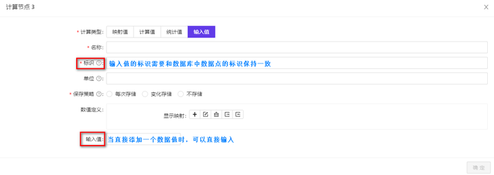 输入值:当需要使用数据库中的某个数据点信息时,可以通过输入与数据库中数据点标识一致即可将其添加为自己的数据点;