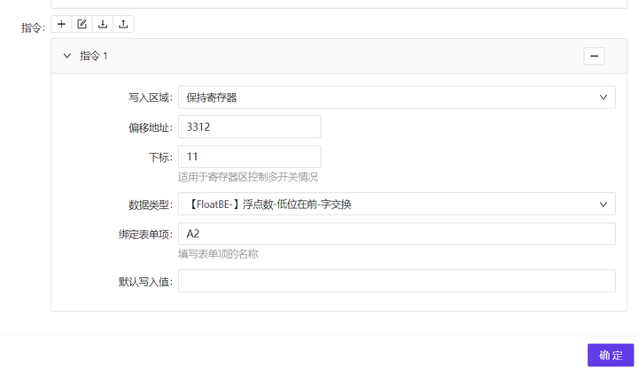 a、模型>设备配置>指令>添加指令>配置表单项