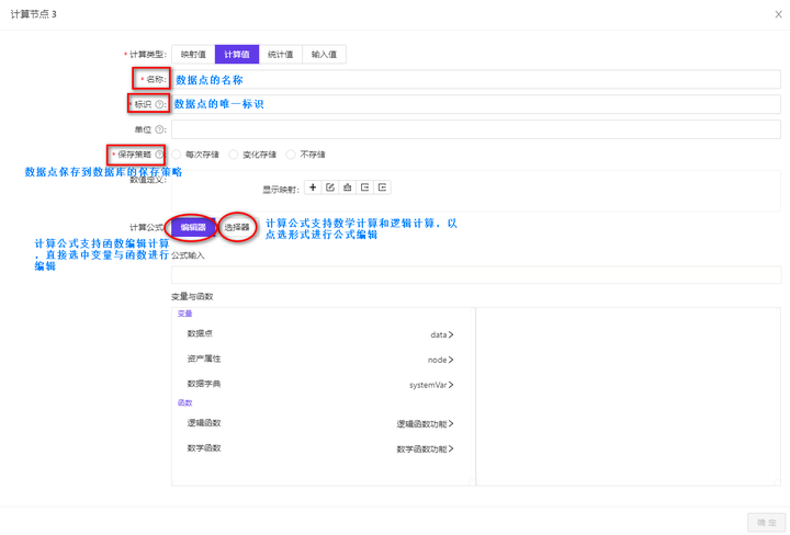 计算值:对任意设备数据点及已有计算节点进行计算得到的数据点;