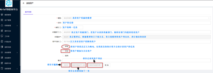 资产是平台中的具体设备信息,创建模型下的具体资产信息。