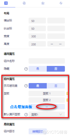 手风琴:定义手机端折叠面板的效果,在对应的折叠面板中编辑相应的内容即可,组件属性配置如图所示: