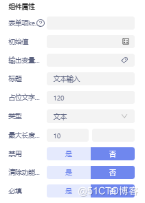 文本输入:可在文本输入组件中输入文本,组件属性配置如图所示: