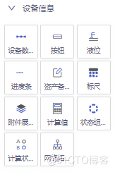 设备信息组件包括设备数据点、按钮、液位、进度条、资产备注、标尺、附件展示、计算值、状态组件、计算状态组件和网络拓扑图,详见下图: