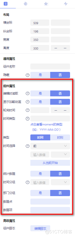 设备数据曲线:进行数据分析的组件,组件属性配置如图所示: