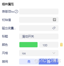 滑动开关:画面预览时,页面上滑动开关的组件,组件属性配置如图所示: