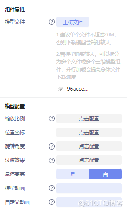 资产卡片配置:将资产一些信息以模型为单位,通过卡片形式显示,可以显示当前模型的资产总数,资产属性等,组件属性配置如图所示: