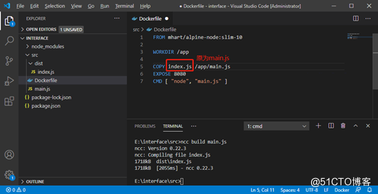 文件拷贝:将上述 index.js 和 Dockerfile 文件拷贝至系统后台任意目录下。