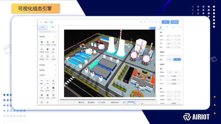 AIRIOT平台的可视化组态引擎,降低了应用的开发难度,所有的开发工作都能在web端配置生成,用户可以在线轻松完成流程管理软件的配置开发。丰富的可视化看板及组件,满足各类工艺流程图、数据可视化需求。支持三维编辑、图形绘制、图表设计等设计方式。多类型行业模板,多种布局方式,轻松搞定画面排版,自由拖拽,支持设计各种组态画面。