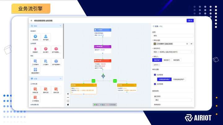 AIRIOT平台业务流引擎可创建丰富的业务流程,实现从流程定义、数据处理、任务工单、消息通知、日志追踪的闭环流转。可视化流程日志,精准追踪流程流转。人工任务统一管理,审批、抄送、填写按需配置。流程任务消息通知,第一时间获取工单信息,轻松实现了业务流的快速流转。