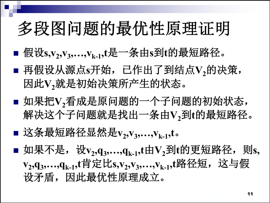 最优性原理成立的例子:流水线调度问题,货郎担问题;