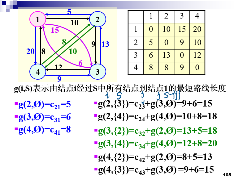 f[i][j]=min(f[i][j],f[i-(1<<j)][k]+w[k][j]);//更新最短距离