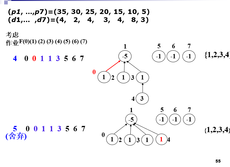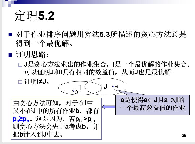 Procedure GREEDY(A,n) //A(1:n)包含n个输入 solution<-∅ for i<-1 to n do x<-SELECT(A) if FEASIBLE(solution,x) then solution<-UNION(solution,x) endif repeat return solution end GREEDY -