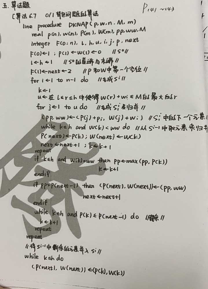 还有一种不知道硬币多重,这时候需要三分procedure choose(low,mid,high) sum1<-sum(A,low,mid-1) sum2<-sum(A,mid,high) if sum1<sum2 then return -1 else if sum1>sum2 then return 1 else return 0 endif end choose procedure find(n,j) integer A(1:N),j//j为假币,若j=0,则不存在假币 j<=0;low<-1;high<-n while low<high do integer mid mid<-(low+high)/2 if choose(low,mid,high)==-1 then high=mid else if choose(low,mid,high)==1 then low=mid+1 else break endif repeat return j end find