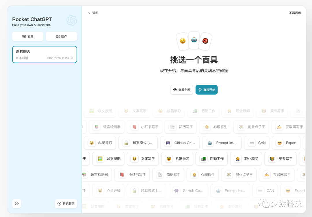 点击直接开始则是新建一个聊天,你也可以选择一个角色聊天。