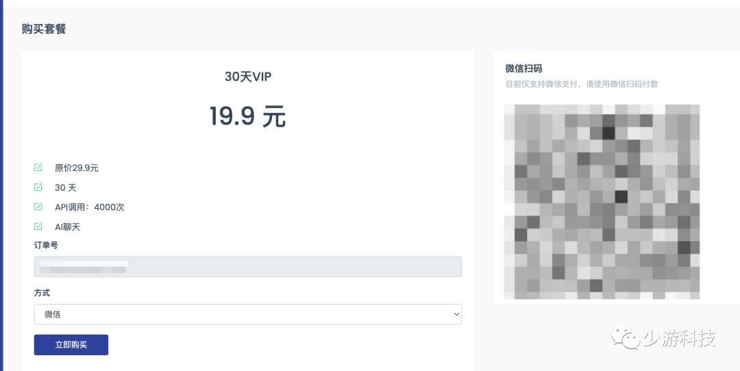 6. 我们点击一个月VIP的购买按钮,会跳转到如下的微信扫码支付页面。