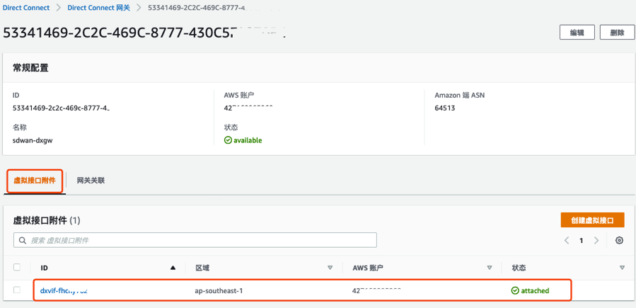 6,重复步骤1-5,在海外区也建立相应的配置。但需要注意的是,海外区用的是 Direct Connect Gateway 而不是 Direct Connect。