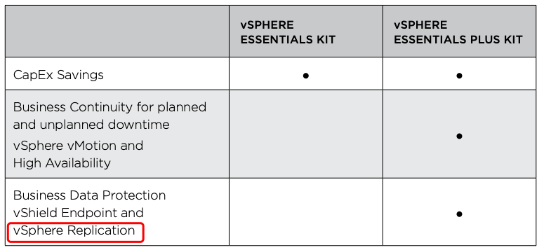 另外,vSphere Replication功能需要特别的许可,需要vSPHEREESSENTIALS PLUS KIT或者更高版本才能支持。