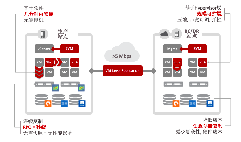 基于软件的复制容灾——与存储无关,支持异构存储,支持超融合的容灾 如 Nutanix,vSAN,SmartX等