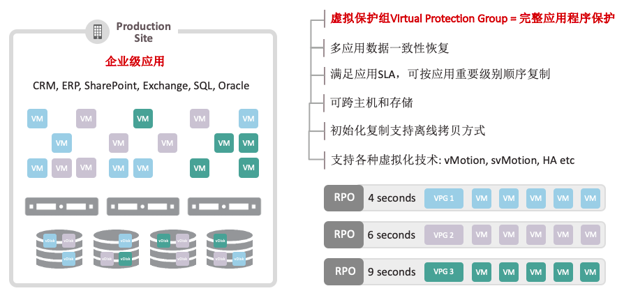 引入虚拟组概念——可保证同一应用的多台虚拟机数据一致性(多台虚拟机恢复至同一时刻点)