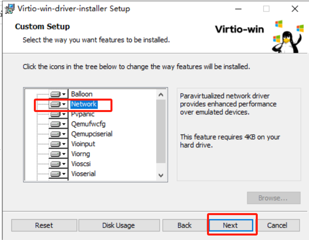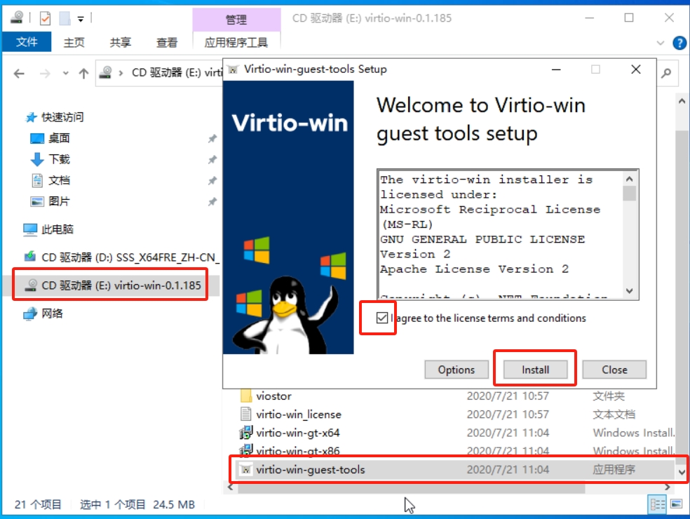 打开VirtIO驱动所在的CD光驱目录,最下面有一个virtio-win-guest-tools程序,会安装用到的virtio驱动,这个驱动也会包含virtio的网卡驱动