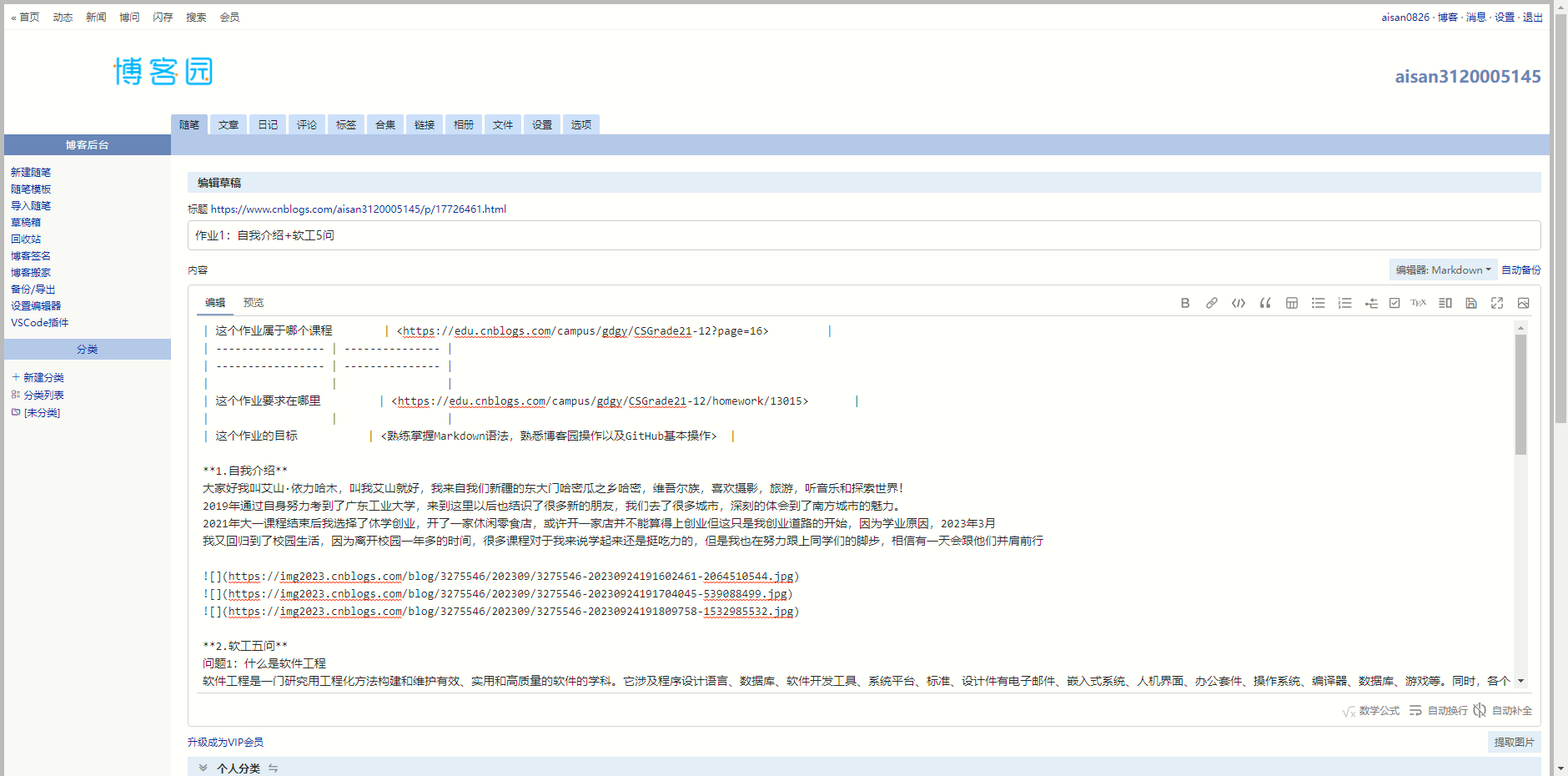 | 这个作业的目标 | <熟练掌握Markdown语法,熟悉博客园操作以及GitHub基本操作> |