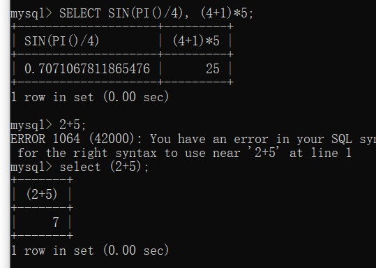(2)用作计算器:select+计算的式子 例如: