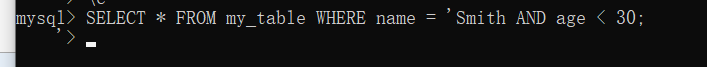 比如输入以下语句:SELECT * FROM my_table WHERE name = 'Smith AND age < 30;