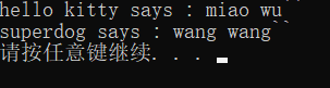 string words = "miao wu``";//此处可以通过参数自行设置宠物的声音