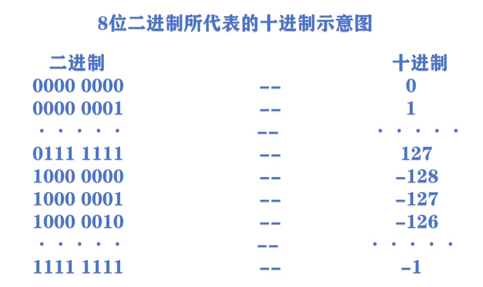 求负整数的二进制:先求该负整数相对应的正整数的二进制代码,然后将所有位取反,末尾加1,不够位数时,左边补1。
