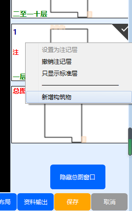 新建构筑物:在右侧的层列表内选择构筑物所属的层号右键【新增构筑物】进行添加;