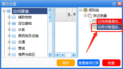 - 路径2:菜单->拆迁测量-检查->属性检查;