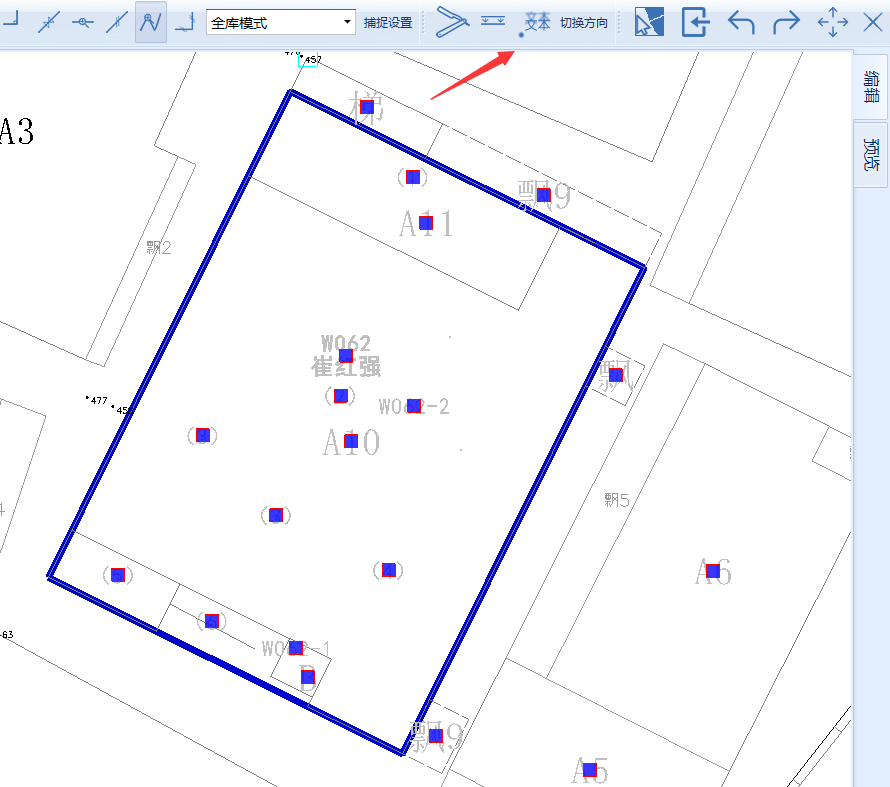 先选择宗地所有自然幢,然后执行【房屋测绘平面图(自然幢)】功能,编辑后需要通过下图所示位置进行保存;