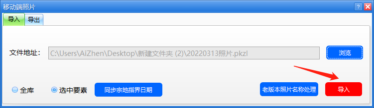 点击【浏览】打开文件选择对话框,选择移动端导出的*.pkzl文件,最后点击【导入】完成操作;