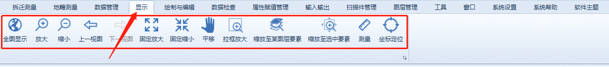 涉及图面的缩放、移动及全图显示,距离及坐标值的查询等相关功能;