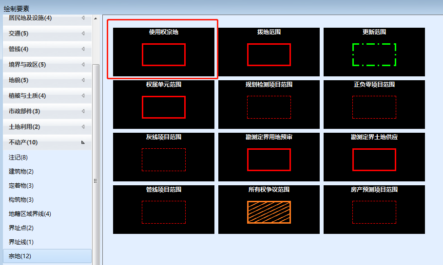 宗地范围线需要使用下图红框内的要素进行绘制:
