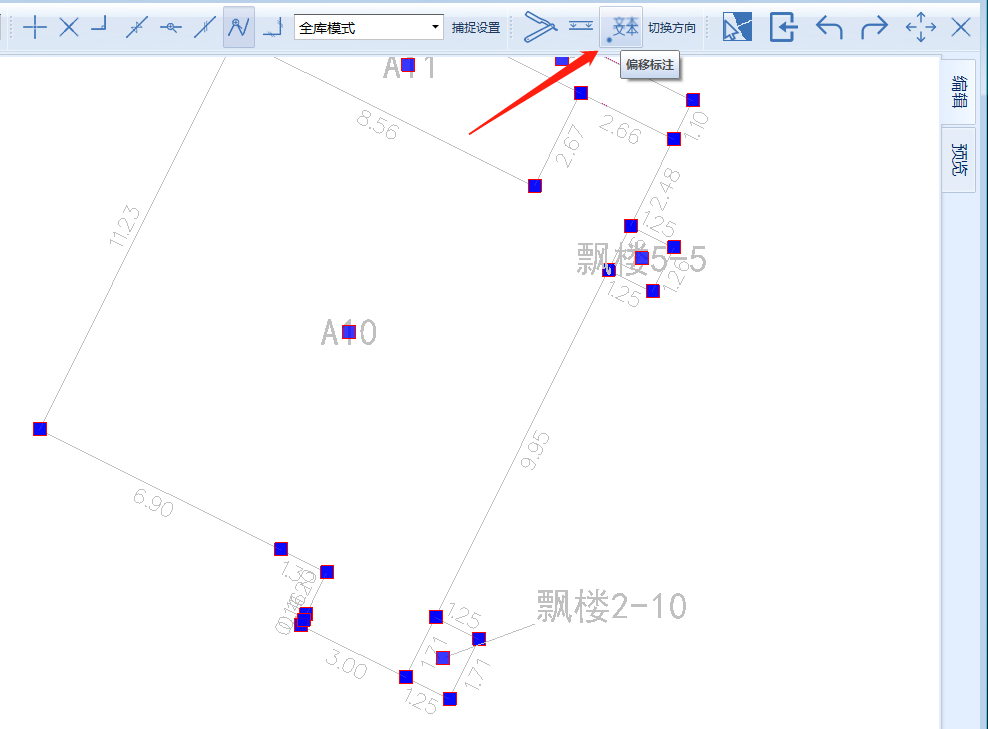 对于不合理的边长注记需要通过调整对应线段的两端进行修改,或通过F1快捷建绘制新的边长注记;