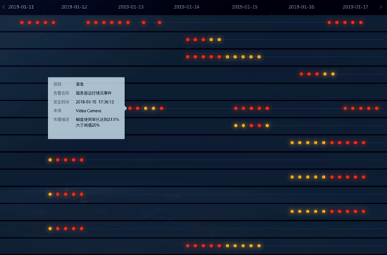 这是展示最近七天数据情况,如果点是红色就是有严重等级告警,黄色就是一般等级告警;