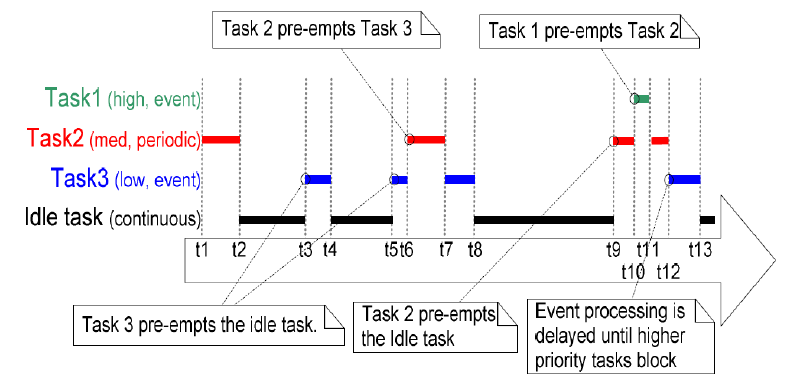 • FreeRTOS内核同时支持轮换调度算法,系统允许不同的任务使用相同的优先