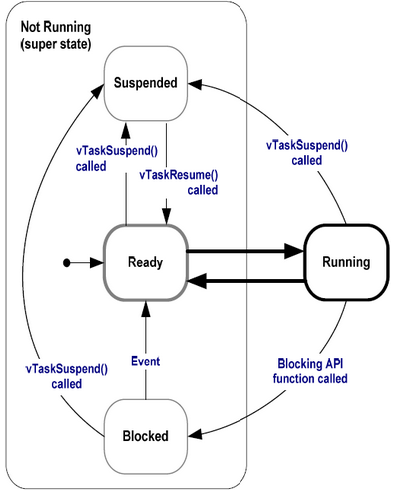 • 在调度器处于挂起状态时,不能调用FreeRTOS API函数.