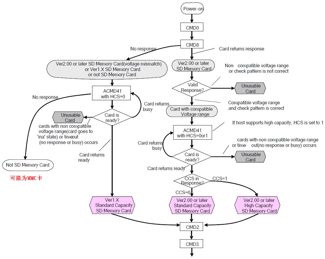 点介绍 SD 卡的初始化。从 SD 卡 2.0 协议文档。