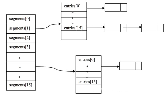 在 JDK1.7 中,ConcurrentHashMap 是由 Segment 数组结构和 HashEntry 数组结构组成。Segment 继承了 ReentrantLock,是一种可重入锁。HashEntry 则用于存储键值对数据。一个 ConcurrentHashMap 里包含一个 Segment 数组,一个 Segment 里包含一个 HashEntry 数组 ,每个 HashEntry 是一个链表结构的元素,因此 JDK1.7 的 ConcurrentHashMap 是一种数组+链表结构。当对 HashEntry 数组的数据进行修改时,必须首先获得与它对应的 Segment 锁,这样只要保证每个 Segment 是线程安全的,也就实现了全局的线程安全