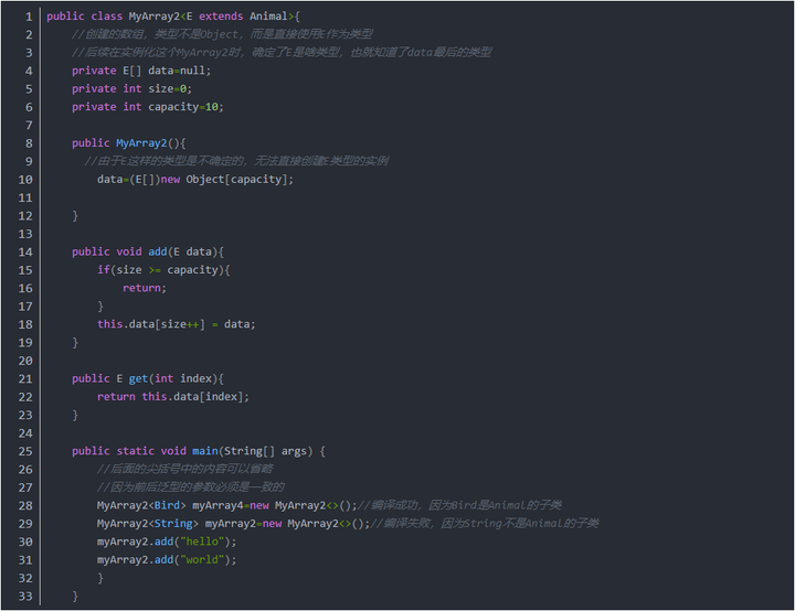 MyArray2<Integer> myArray3=new MyArray2<>();